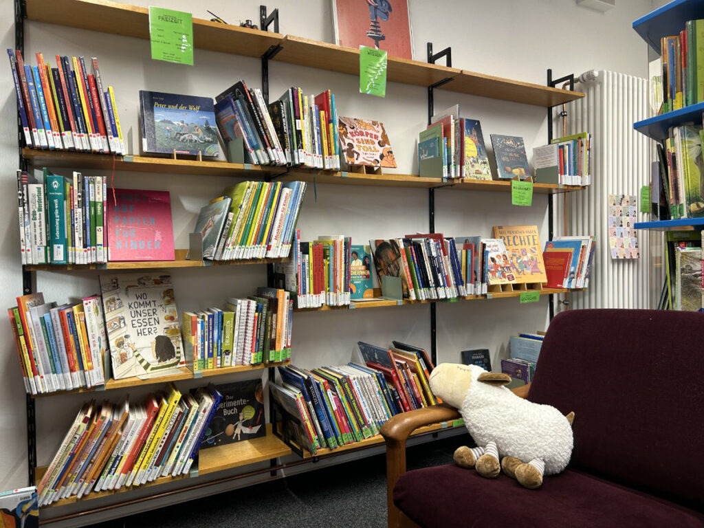 Hier bist du genau richtig – egal, wie alt du bist, woher du kommst oder was du gerne liest. Unsere Bibliothek ist ein entspannter Ort für alle Menschen im Stadtteil und aus ganz Bremen – mit (Sach-)Büchern, gemütlicher Leseecke, Café… es gibt viel Raum zum Lesen, Spielen, Genießen und Entdecken! Du findest bei uns Bücher zum Staunen, Vorlesen, Lesen lernen und Schmökern, mit Geschichten zu Themen wie Gefühlen, Ausgrenzung, Alltag, Familien bis hin zu Wissensbüchern über die ganze Welt, Tiere, Berufe und Abenteuer.