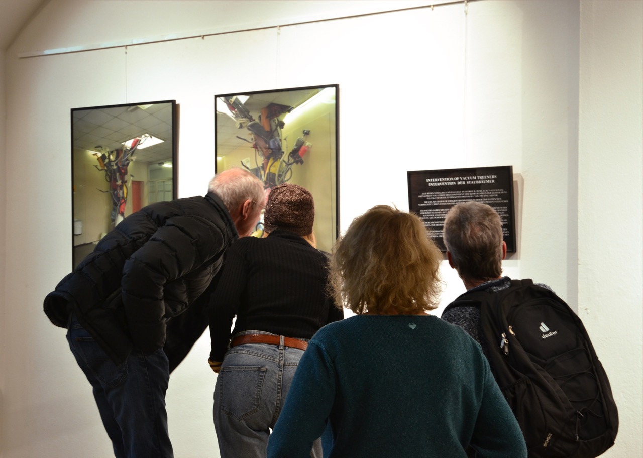 Aufgrund der erfreulichen Resonanz der Eröffnung der Ausstellung „Kunst.Zeit.Raum.“ bieten wir eine zweite Veranstaltung an: eine Führung durch die Ausstellung mit Martin Zülch. Gezeigt werden auch drei dazu gehörigen Dokumentarfilmen: zu einem Automobilkunstprojekt („Alles kommt wieder hoch“), einer Aktion mit toten Seevögeln auf Spiekeroog („Manche Vögel sind schon – da …“) und einer weiteren Kunstaktion, die der klimapolitisch brisanten Staubsaugerplastik „Intervention of Vacuum Treeners“ gewidmet war („Wenn sich Staubsauger, Staubwedel und Staubtücher ein Stelldichein geben …“).