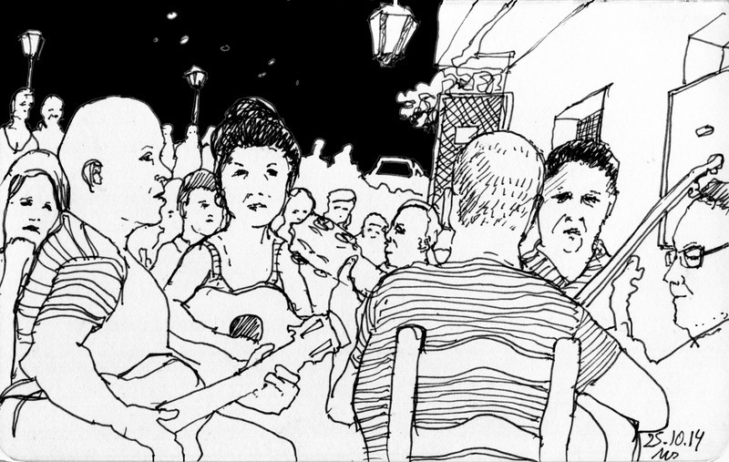deshalb von den Menschen, die er zeichnet, intensiver wahrgenommen als jemand, der mit Handykamera fotografiert. Der Begriff Urban Sketching verweist auf das detailgenaue Erfassen der städtischen Umgebung, eine Herausforderung, der sich weltweit mehr als 5000 Menschen stellen und die ihre Zeichnungen auf www.urbansketchers.org präsentieren.