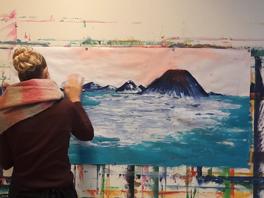 Die Teilnehmer:innen malen mit hochwertigen Gouachefarben auf großformatigen Bögen an unserer Malwand – je nach Vorliebe mit den Händen, Pinseln, Schwämmen oder Spachteln. Hier geht es darum, ohne künstlerischen Anspruch die eigene Kreativität, die Freude am Malen und an den Farben (neu) zu entdecken. Begleitet von der Kursleiterin gehen sie auf eine kreative Entdeckungsreise. Dieser kreative Prozess eröffnet auch Raum für Selbsterfahrung. Die Kurse finden in einem geschützten Rahmen mit max. 5 Teilnehmer:innen statt. Kleidung und Schuhe, die Farbe vertragen, sollten mitgebracht werden.